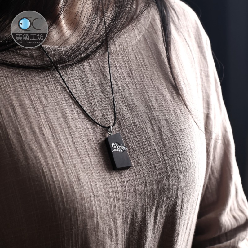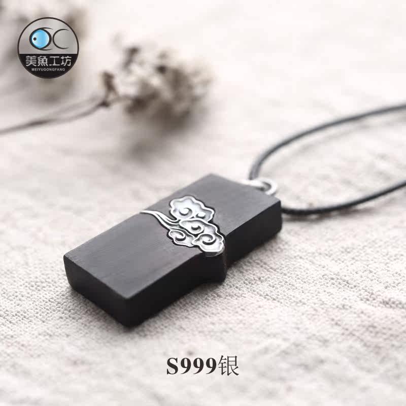 Custom ebony pure Thai silver clouds zen men and women antique jewelry lettering item pendant long sweater necklace