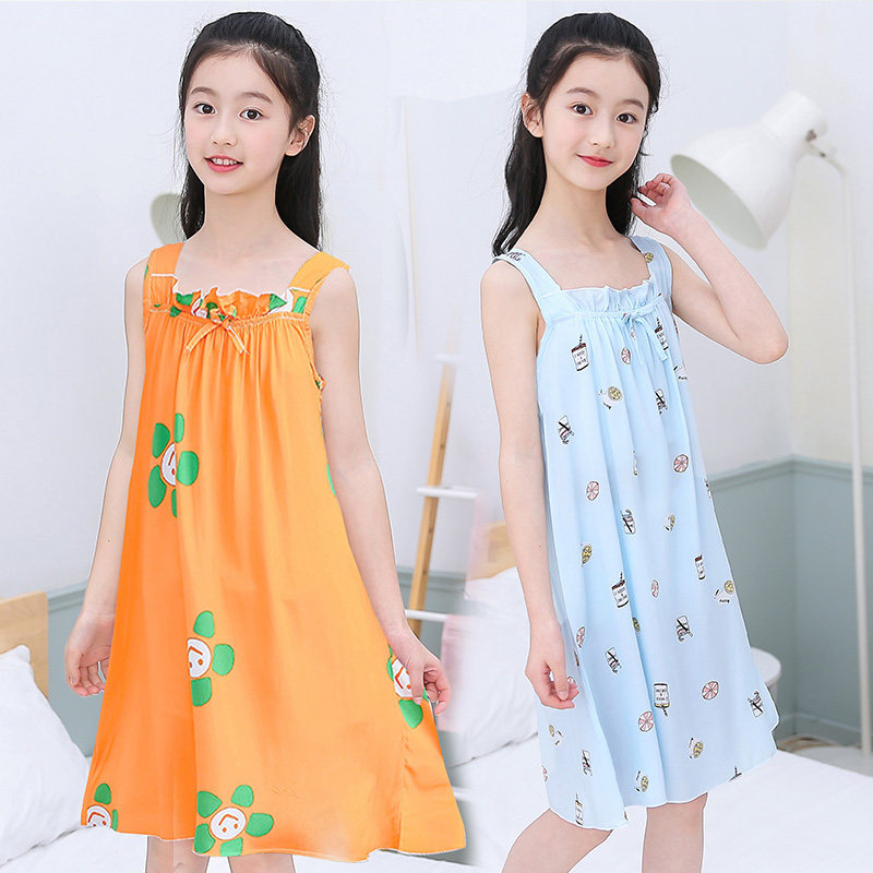 Children's artificial cotton dress casual cotton linen skirt thin section Girls cotton Poplin summer baby summer pajamas princess dress