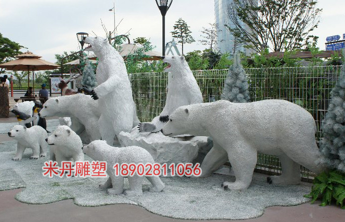 Polar bear sculpture model park garden garden large-scale fiberglass simulation animal sculpture ornaments 5-piece set