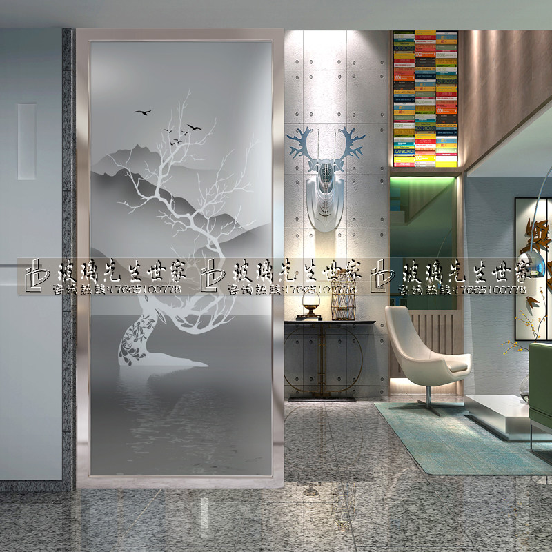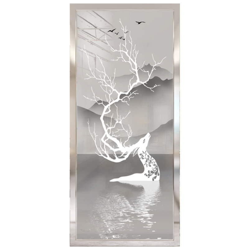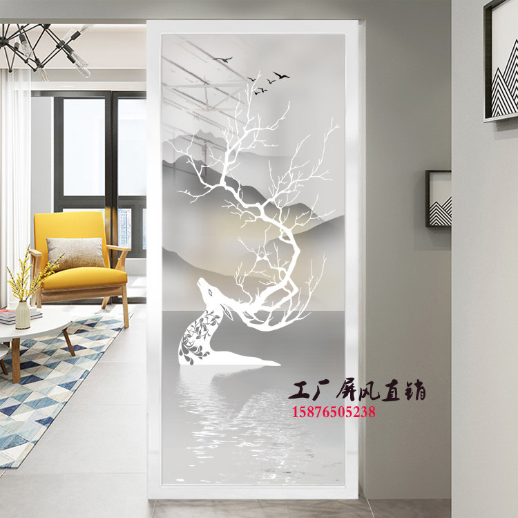 Home Clothing Art Glass Minimalist Eurostyle Aisle Xuan Guan Frosted Double Sided View Living Room Shoe Cabinet Screen Partition Wall Elk Deer
