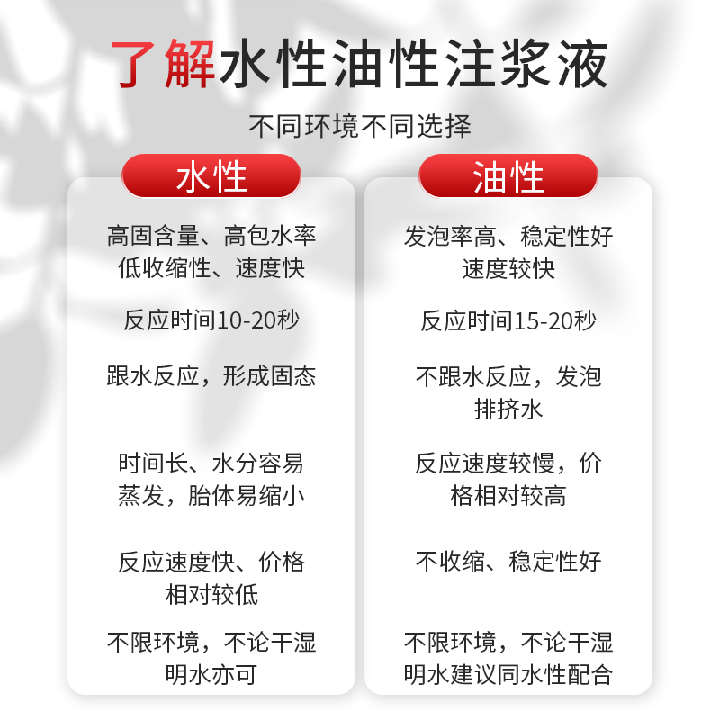 Oil grouting Polyurethane waterproof high pressure plugging agent machine injection filling epoxy resin water-based grouting material