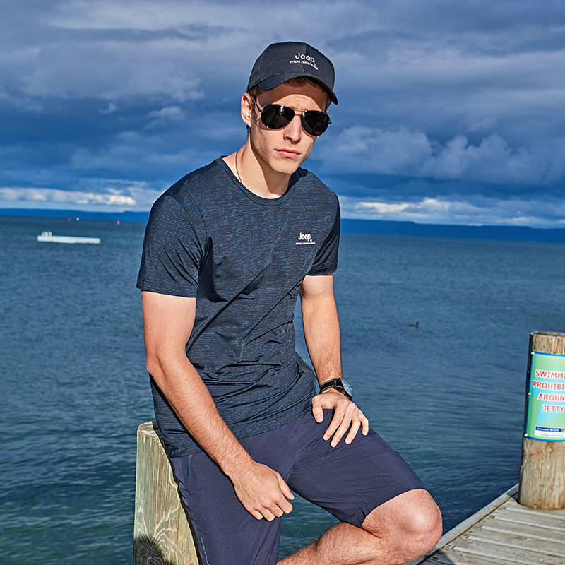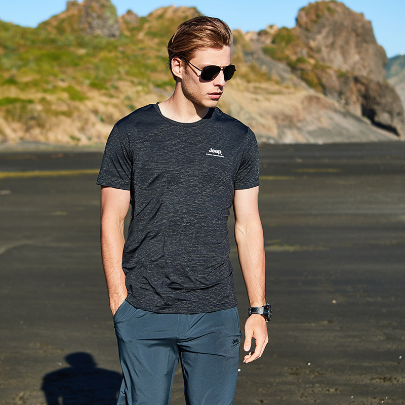 jeep gip gip summer speed dry t-shirt male outdoor casual sports men short sleeve shirt youth pure color round collar breathable