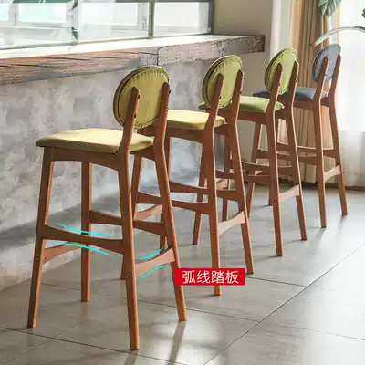 Anmu Nordic solid wood bar chair creative retro bar chair modern simple bar stool backrest high stool