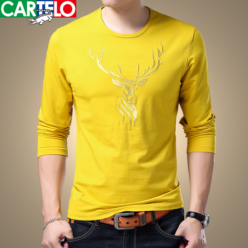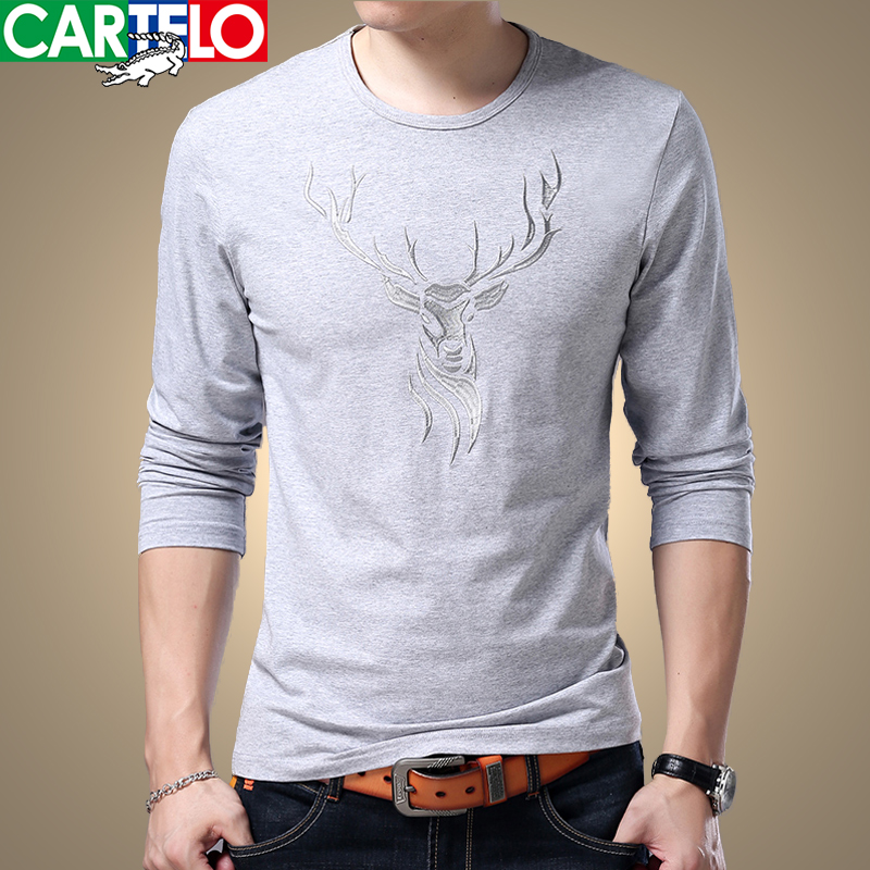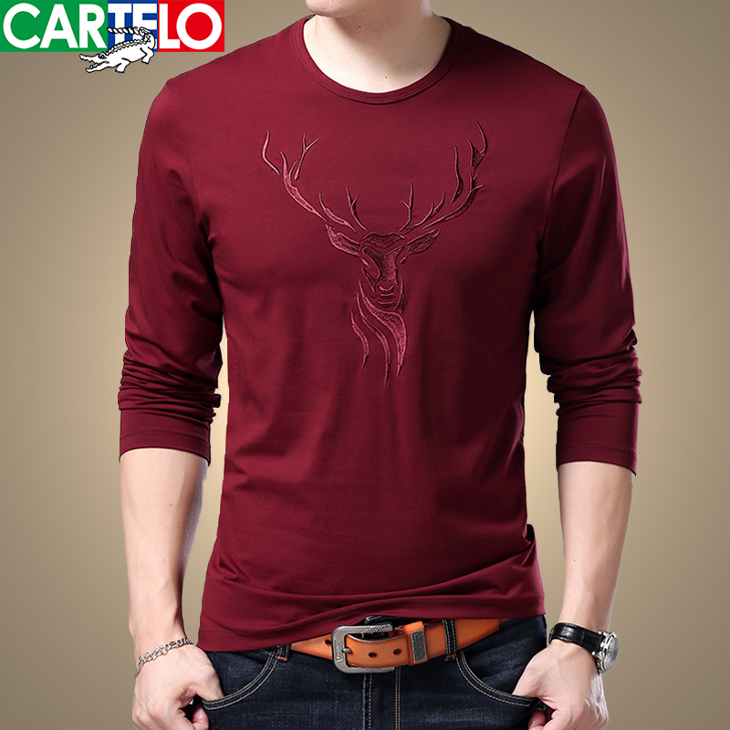 Cardiole Crocodile Spring/Summer New Men's Long Sleeve Cotton T-Shirt Round Neck Pullover Cotton Top Deer Head T-Shirt Men