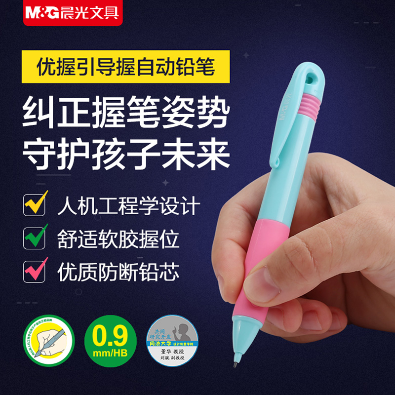 Morning light Yougrip beginnics writing Primary school students 1-2 3 grade automatic pencil 0 9mm1 1mm2 0mm Child correction posture correction Grip Pen lead Core 2B HB AM
