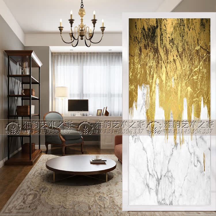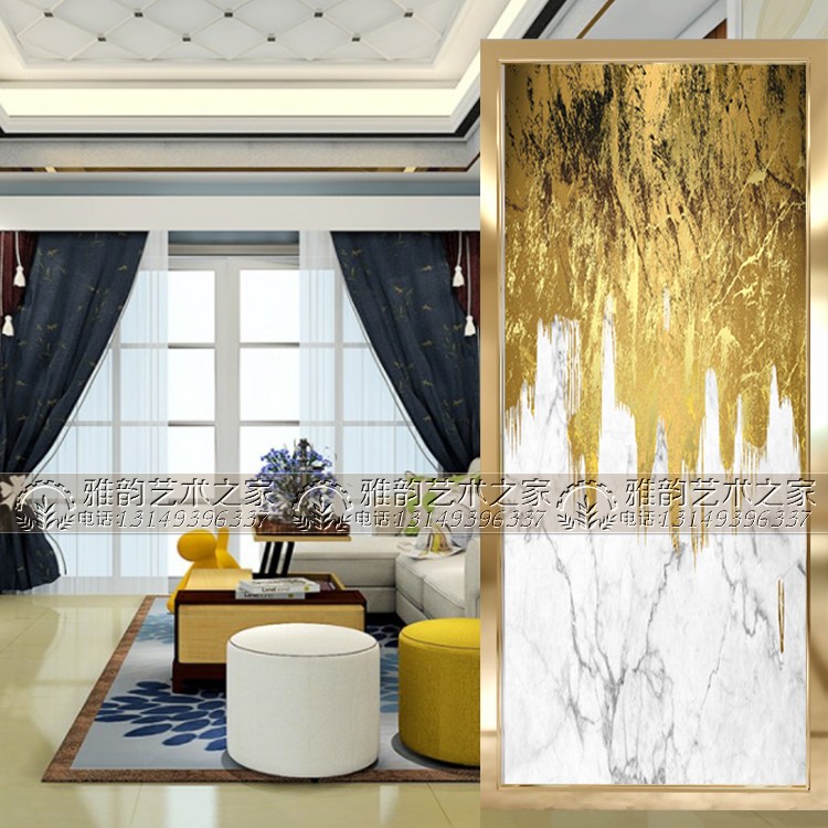 Art Glass Background Wall Genguan Aisle Partition Screen Steel Antique Marble Imitation Marble