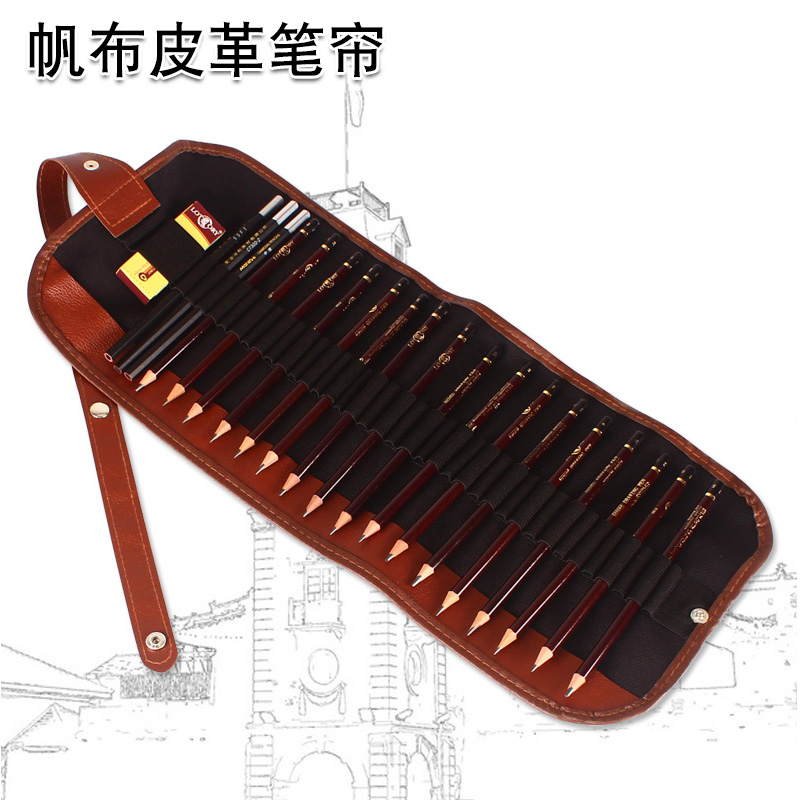 Canvas leather pen curtain 36 48 72 holes pencil wrapping sketching colored pencils with rolls of fine art stationery