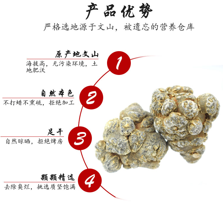 Yunnan Wenshanchun Sanqi no cut mouth 12 heads 14 heads 16 heads 18 heads 20 heads Slippery head Tianqi powder 500g on behalf of grinding powder