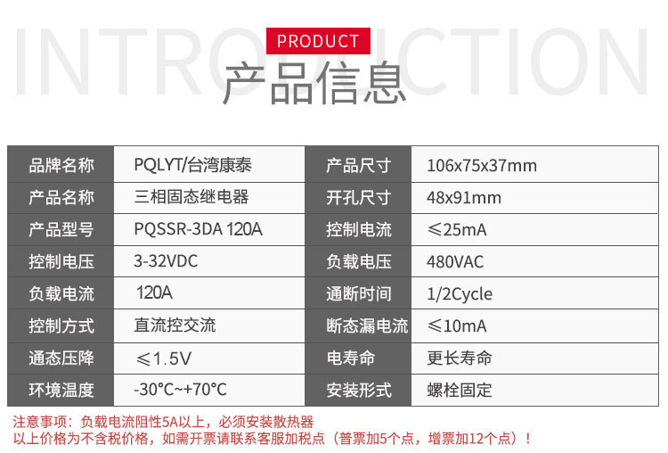 Taiwan Kangtai three-phase solid state relay 120A PQSSR-3DA DC control AC GTJ33-120A