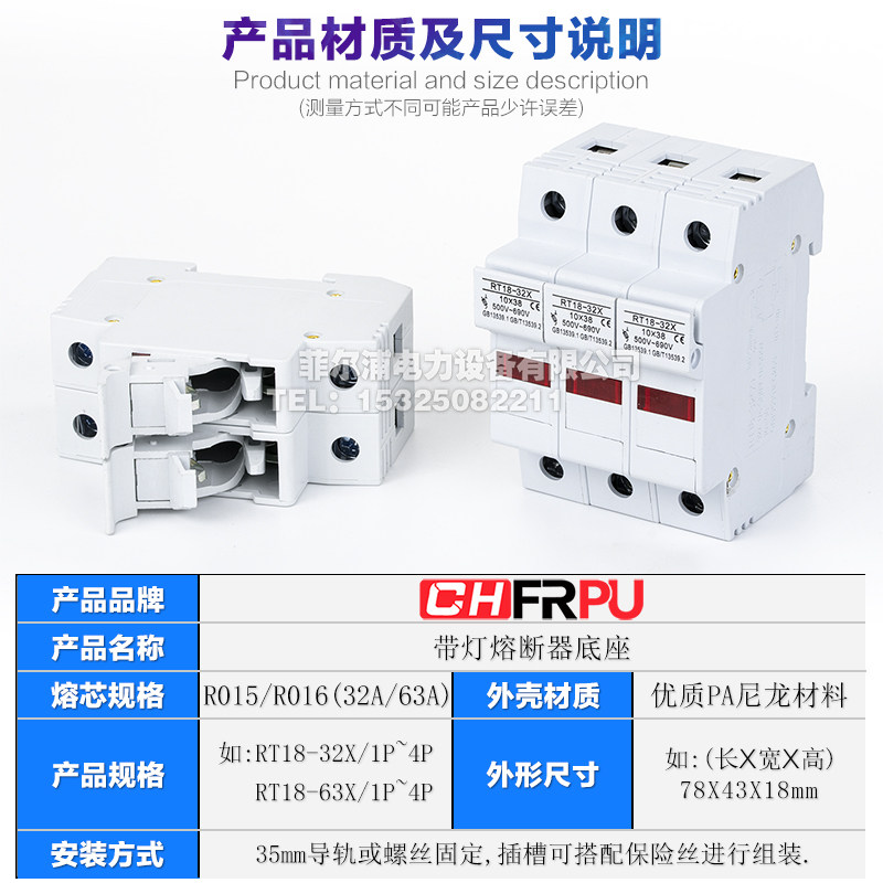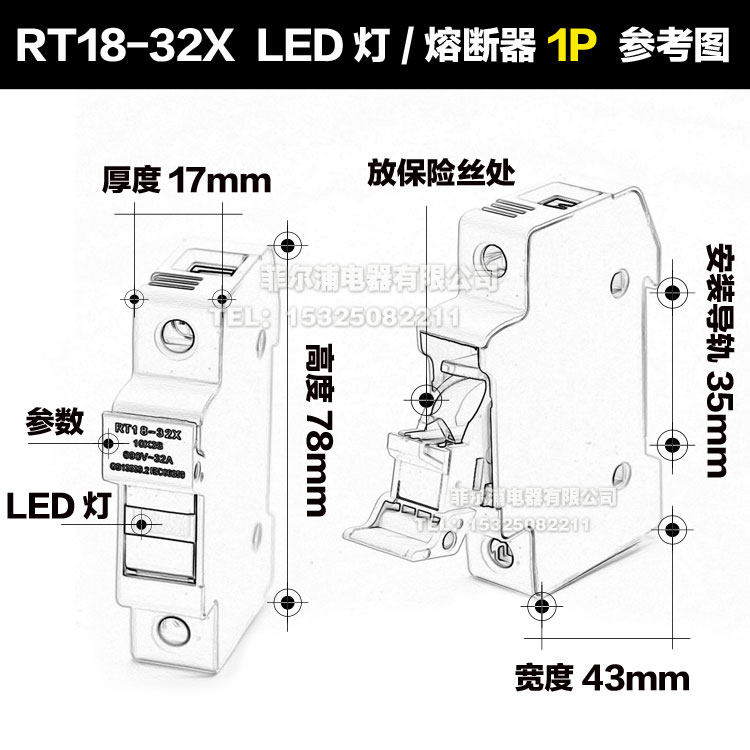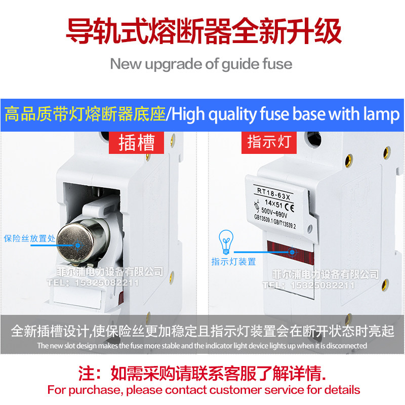 New rail type fuse base RT18-32X 63X1P with LED light 10*38 fuse core sub base