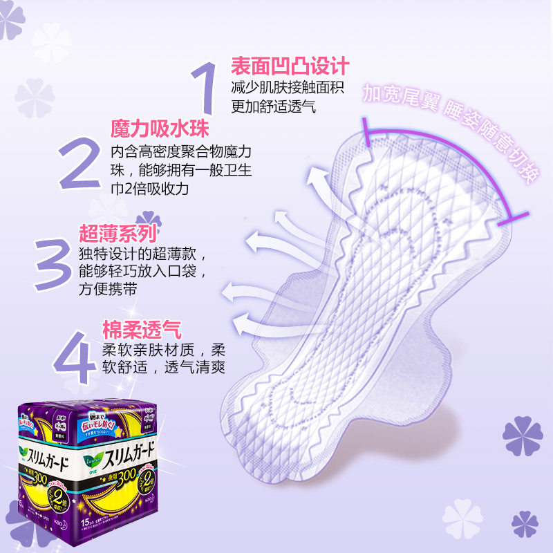 Japan imported Kao Leerya S series night with ultra-thin breathable and dry sanitary napkin 300MM 15 pieces of aunt towel