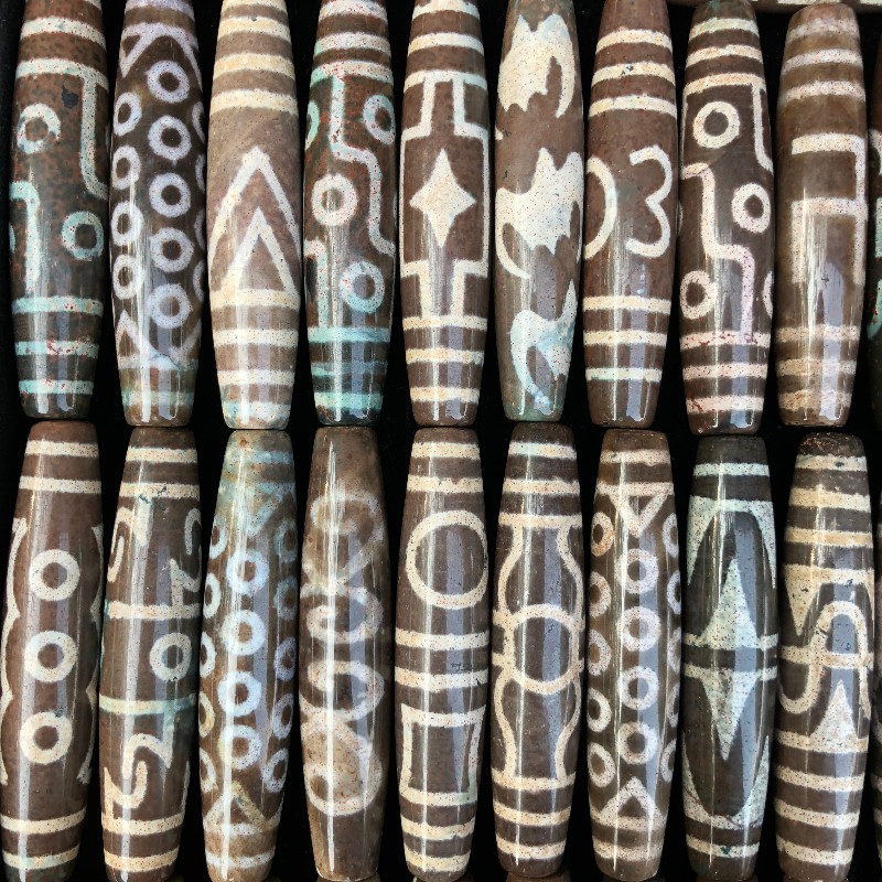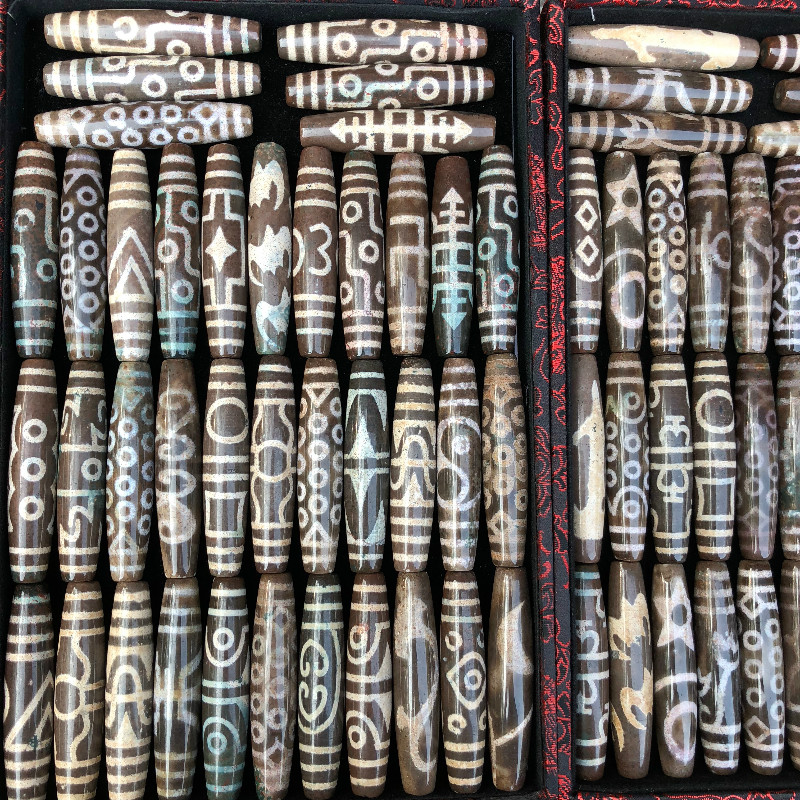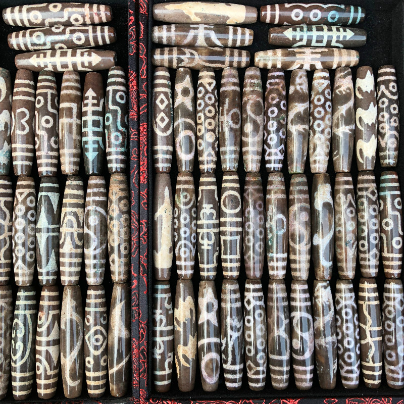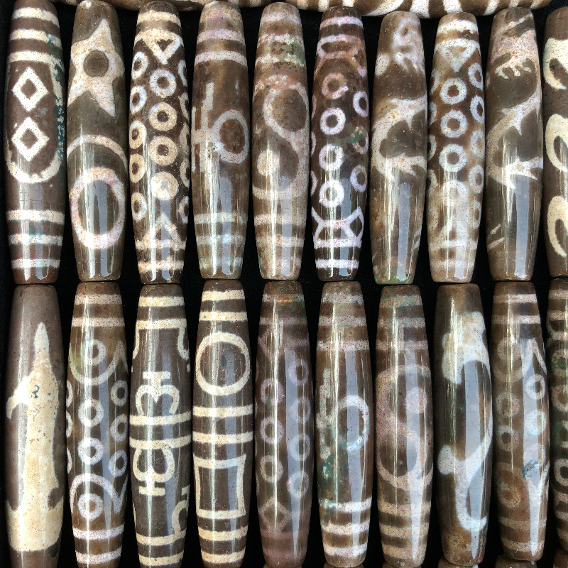 Tibet Zhangxiong Dzi Tibetan Old Dzi Natural Full of Cinnabar Old Pit Old Material Shale Heavenly Descending Stone Treasures