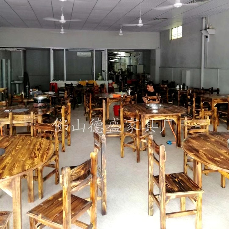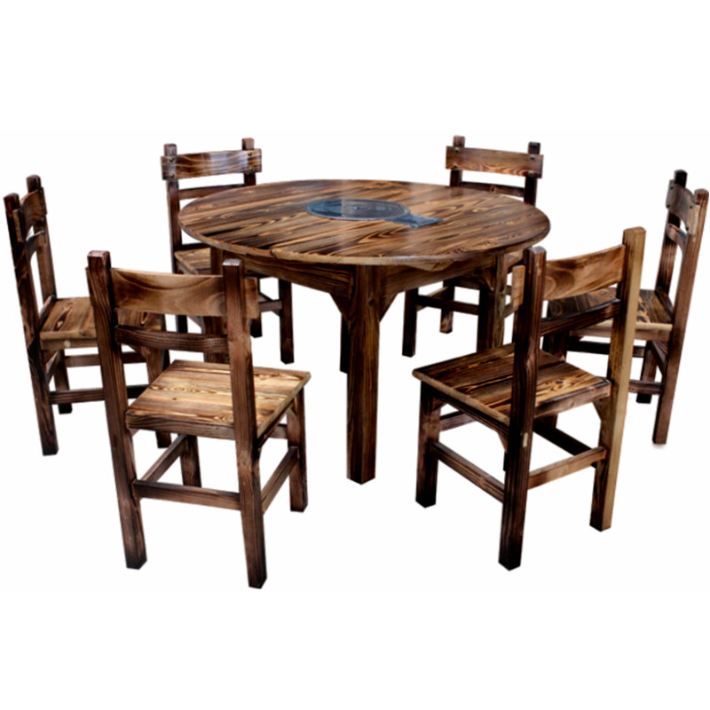 Drunk Goose Fire Pot Shop Imitation Ancient Charred Hot Pot Table And Chairs Full Solid Wood Farmstead Dining Room New Chinese Furniture Chair Combination