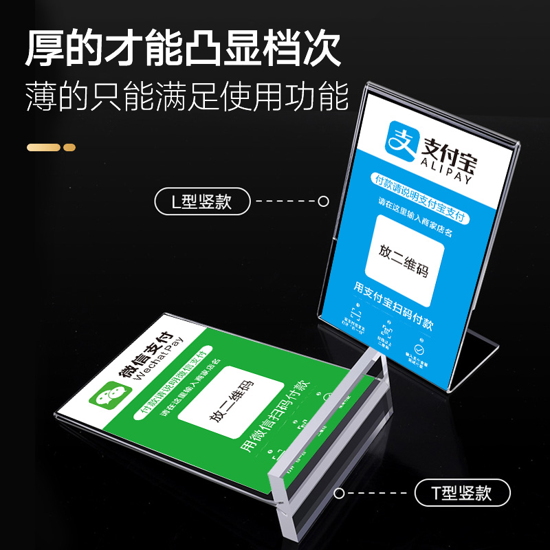 2 A6 two-dimensional code payment cards customized acrylic table card table card transparent display shelf advertising table card creative Table sign scanning code card setting double-sided standing card l-type money collection code payment card
