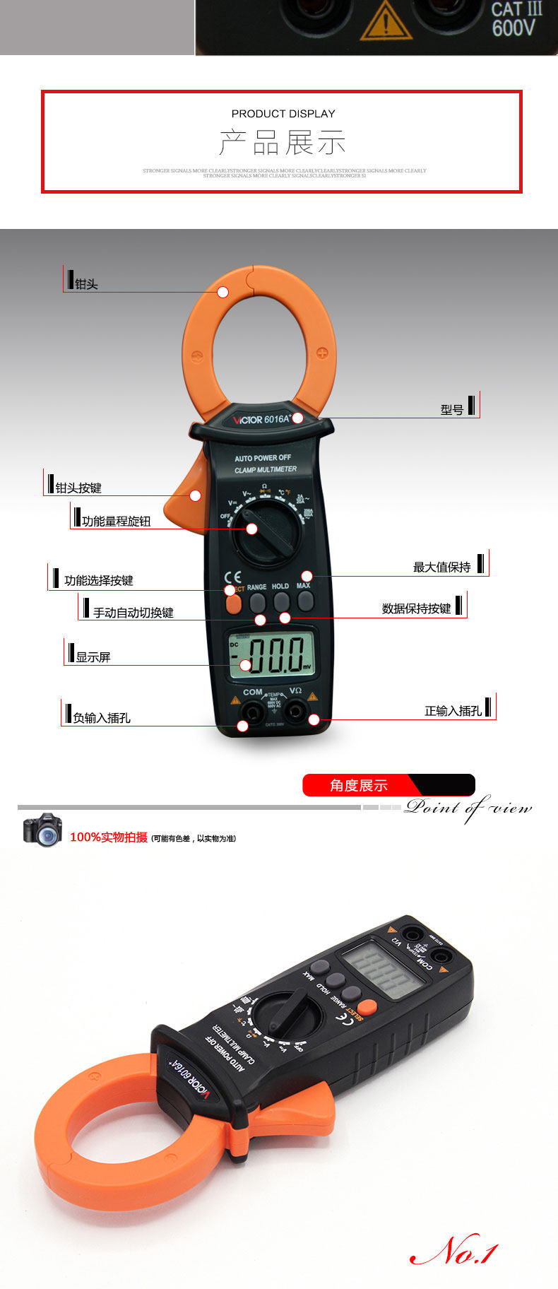 Victory digital clamp meter DM6016A 600A current automatic clamp meter temperature frequency clamp meter