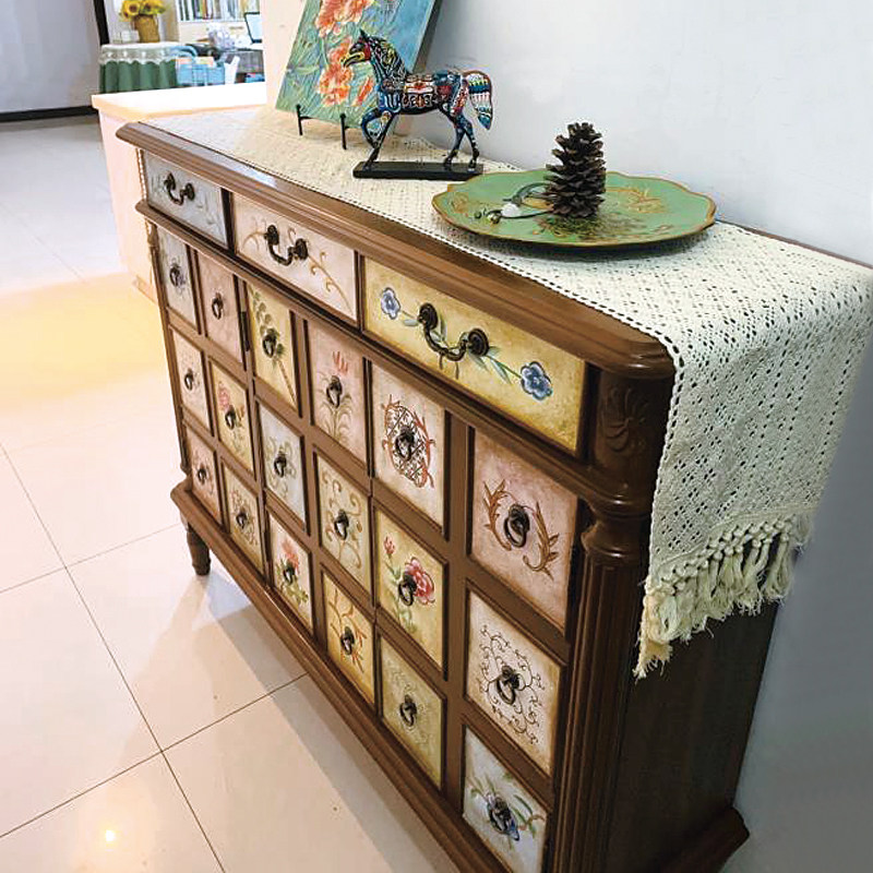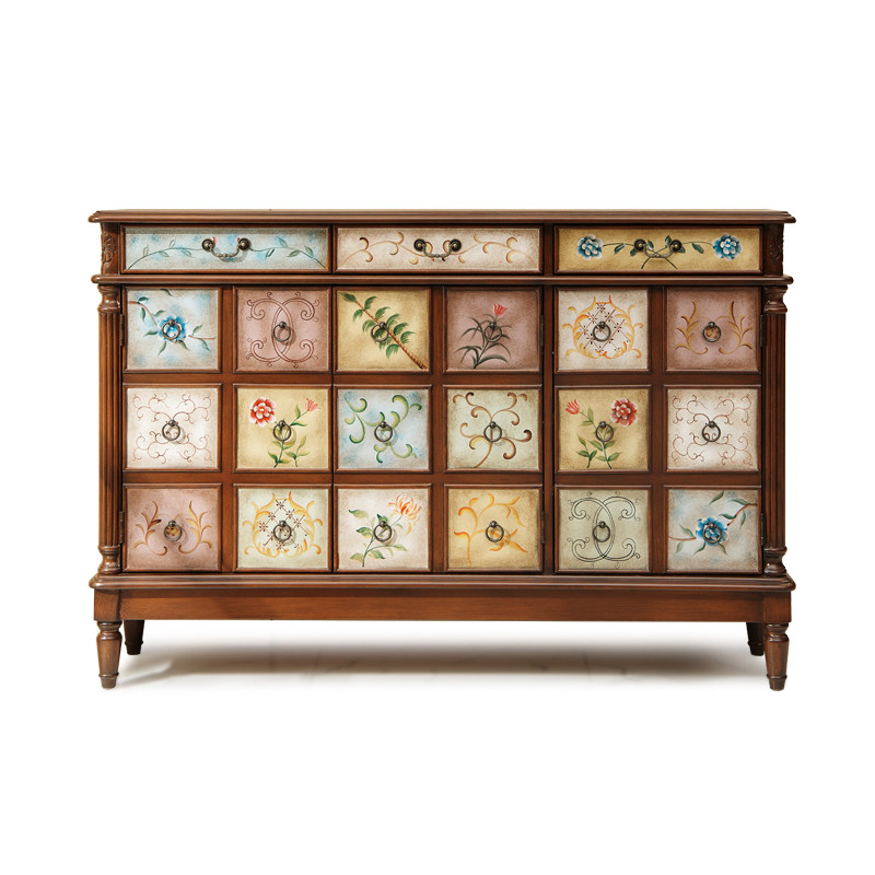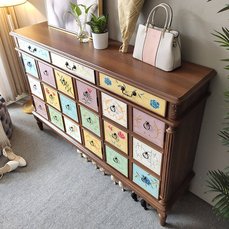 Hand-painted four-door 18-meter log color shoe cabinet collocation