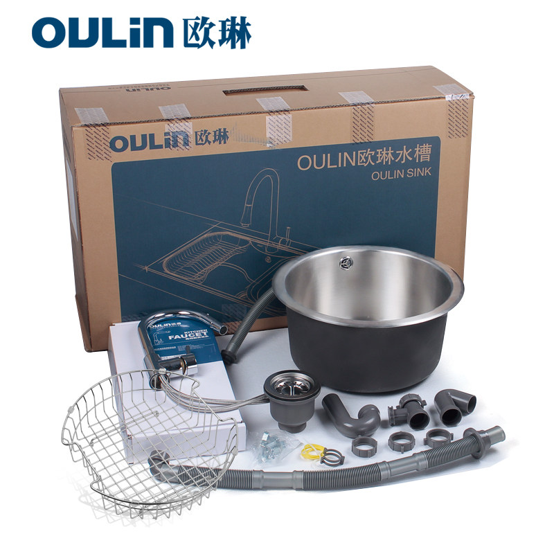 Orene Sink Single Sink Round Trough Laundry Tank 304 Stainless Steel Balcony Sink Laundry Pool 309