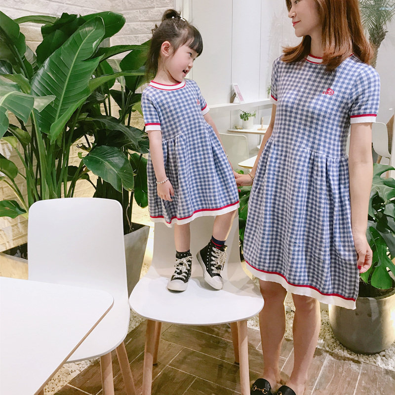 Mother and daughter in a dress.