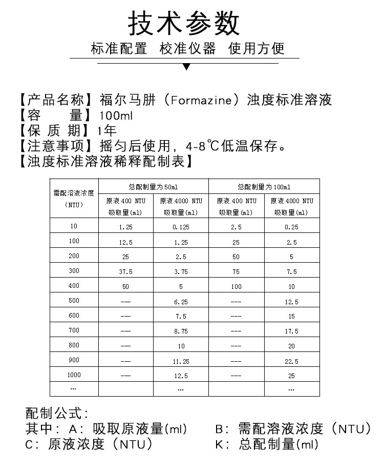 The standard solution of the turbidity instrument 400ntu turbidity standard solution is compared to the standard solution of the color turbidity meter