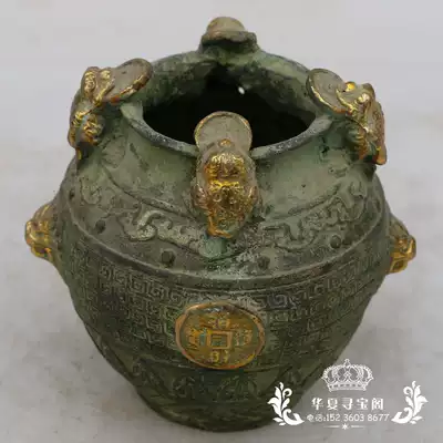 New antiques antique bronze Daming Xuande retro Golden Cicada tank gilt Four Seasons rich bronze gold cicada Jar Ornaments