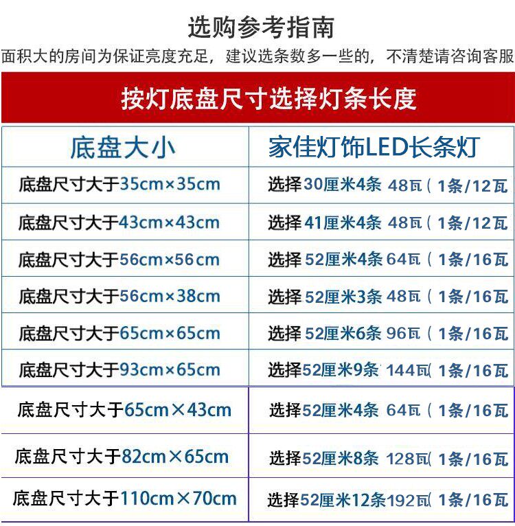 Three-color dimming 22 cm, four 32-watt three-color dimming 30 cm, four 48-watt three-color dimming 30 cm, five 60-watt three-color dimming 30 cm, six 72-watt three-color dimming 30 cm