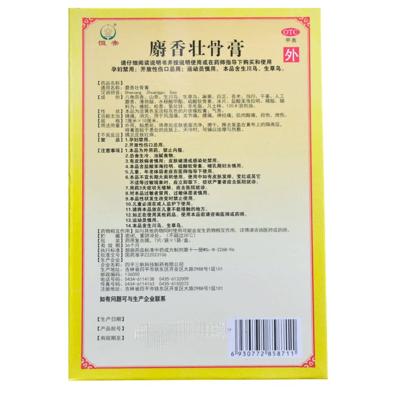 Hengdi Musk Zhuang Bone Paste 7 stickers Rheumatism pain Joint pain Neuralgia Muscle pain Sprain contusion plaster