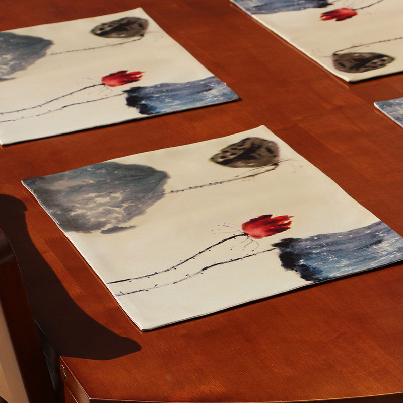 New Chinese waterproof silk fabric placemat Zen small tea mat Western mat Tea table mat Heat insulation anti-ironing mat Bowl mat
