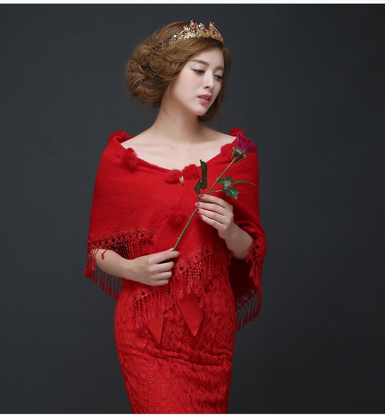 Wedding Gown Wedding Dress Wedding dress Shoulder Qipao Chic Bridal Bridal Cape Spring Autumn Summer White Red Large Size for Covering Arms