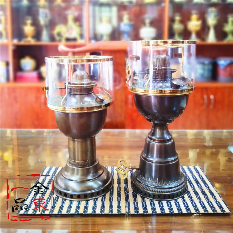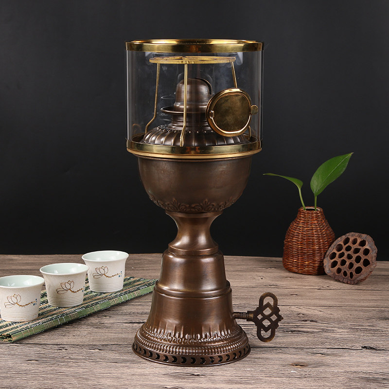 Blowing kerosene air lamp pure copper Chinese tea set boiling water boiled tea coffee stove Retro winding old oil lamp