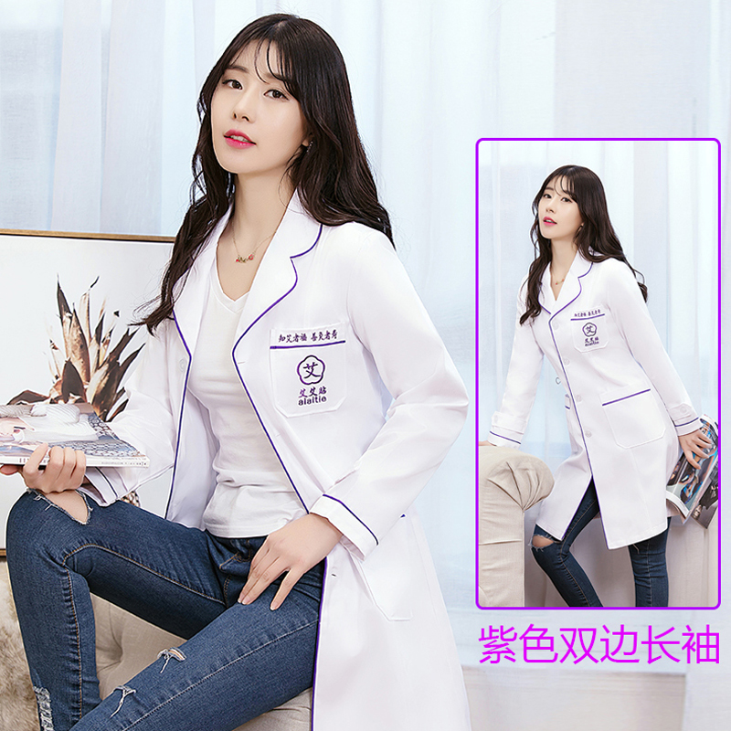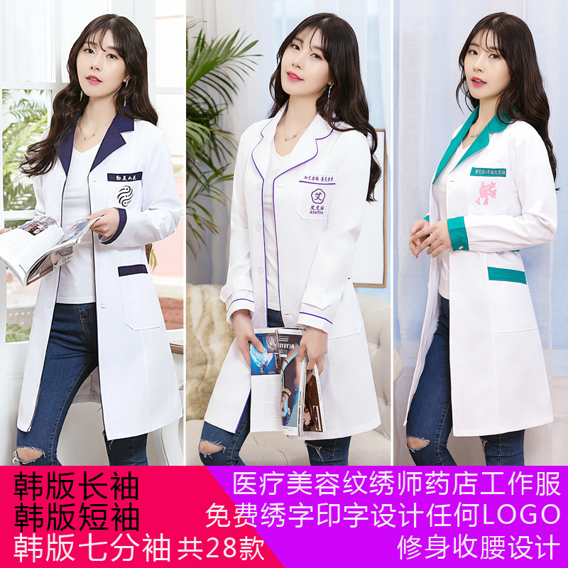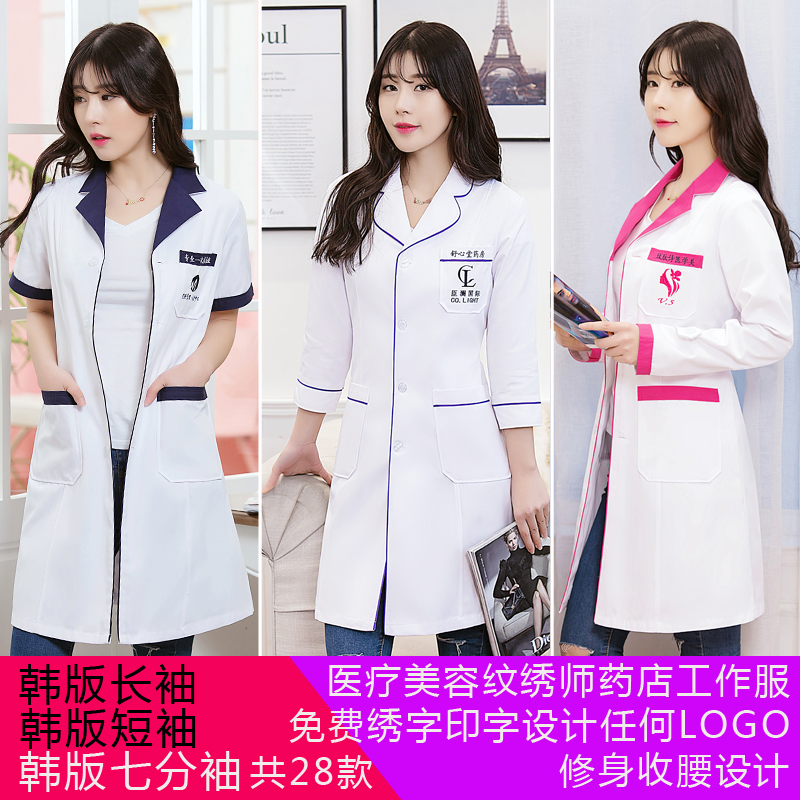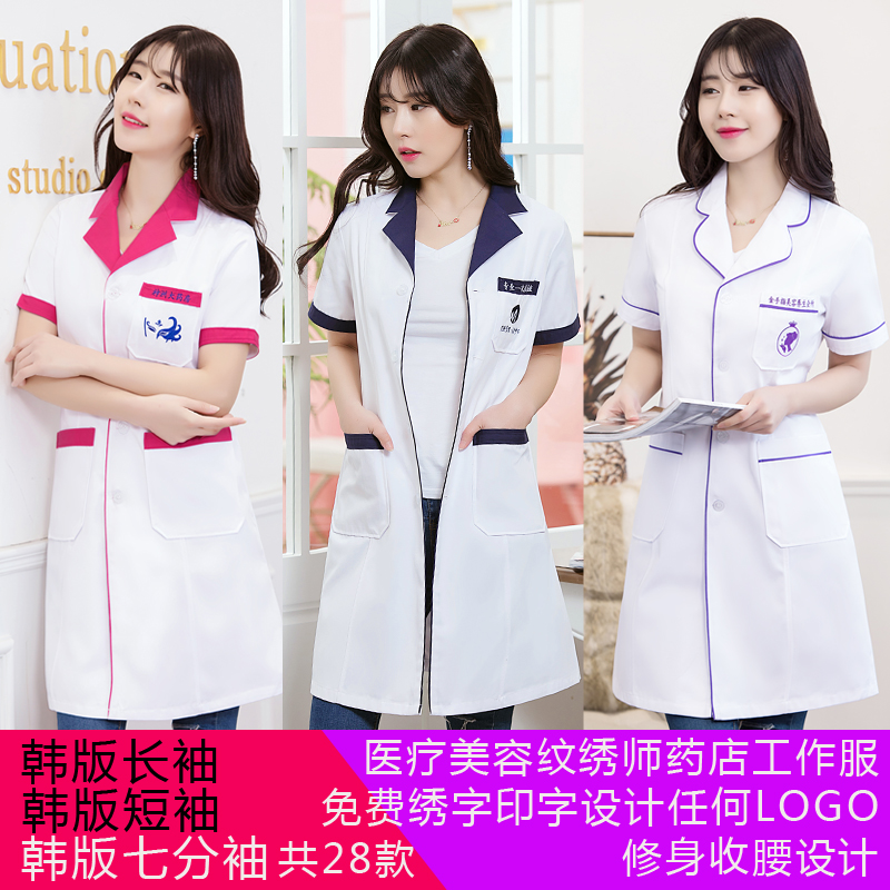 Korean version white coat of white coat nurse skin management beauty salon embroidery division embroidered with long sleeve short sleeve female doctor's medication store