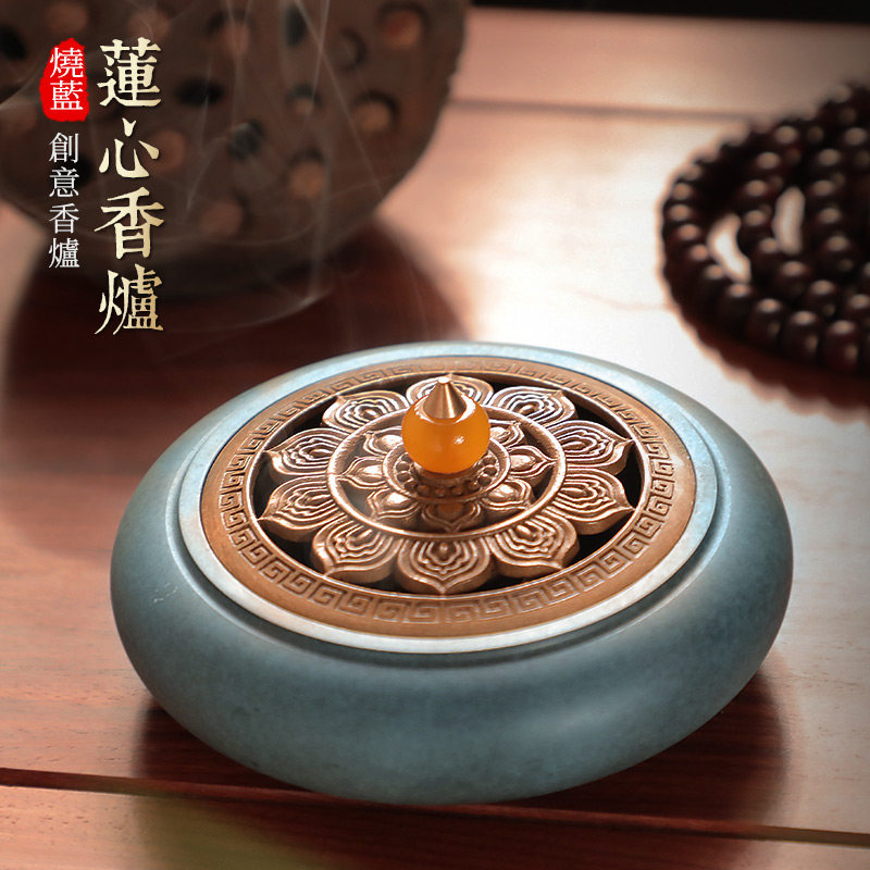 Zizhu Forest antique pure copper sandalwood furnace Hollow Lotus aroma furnace Indoor creative Zen plate incense burner gift ornaments