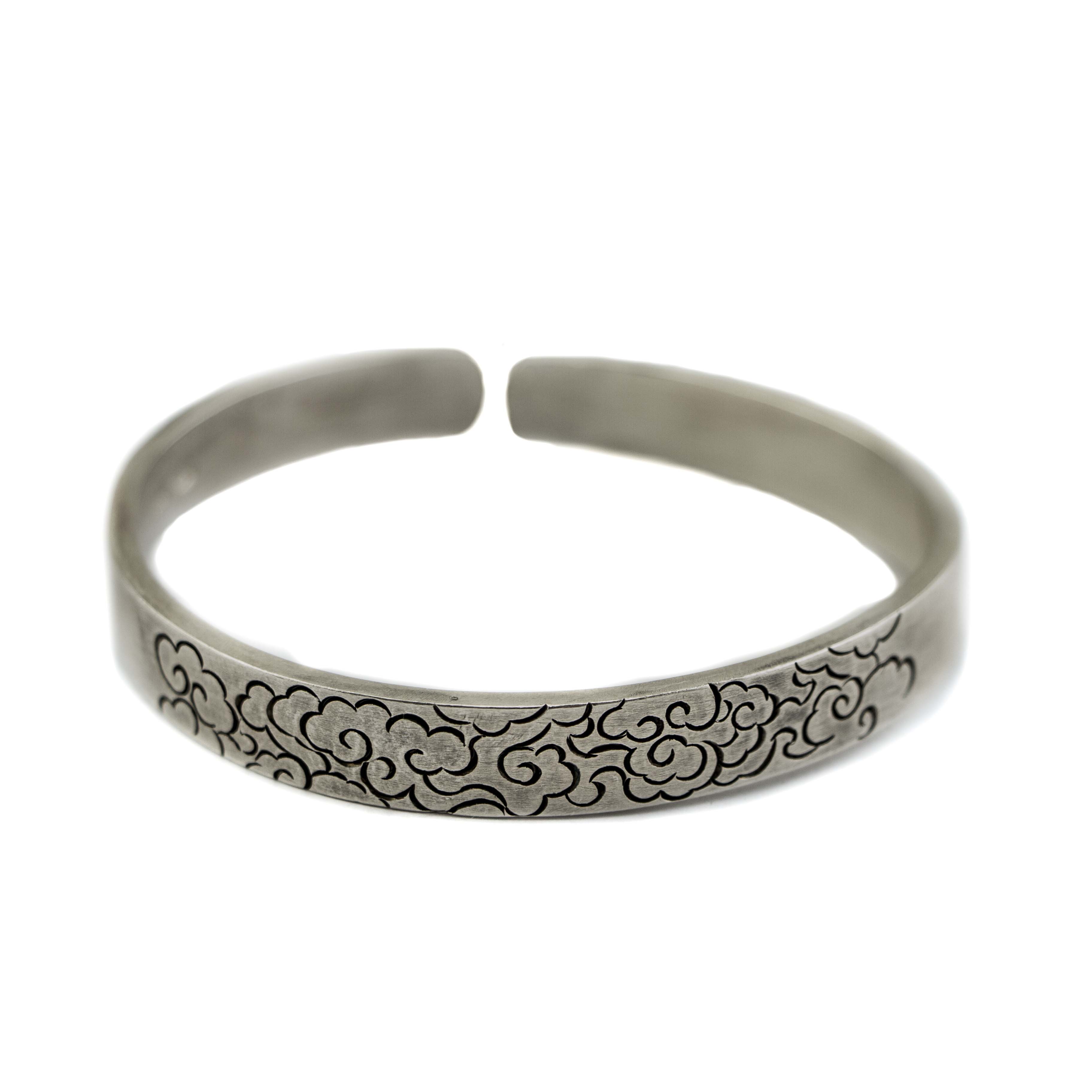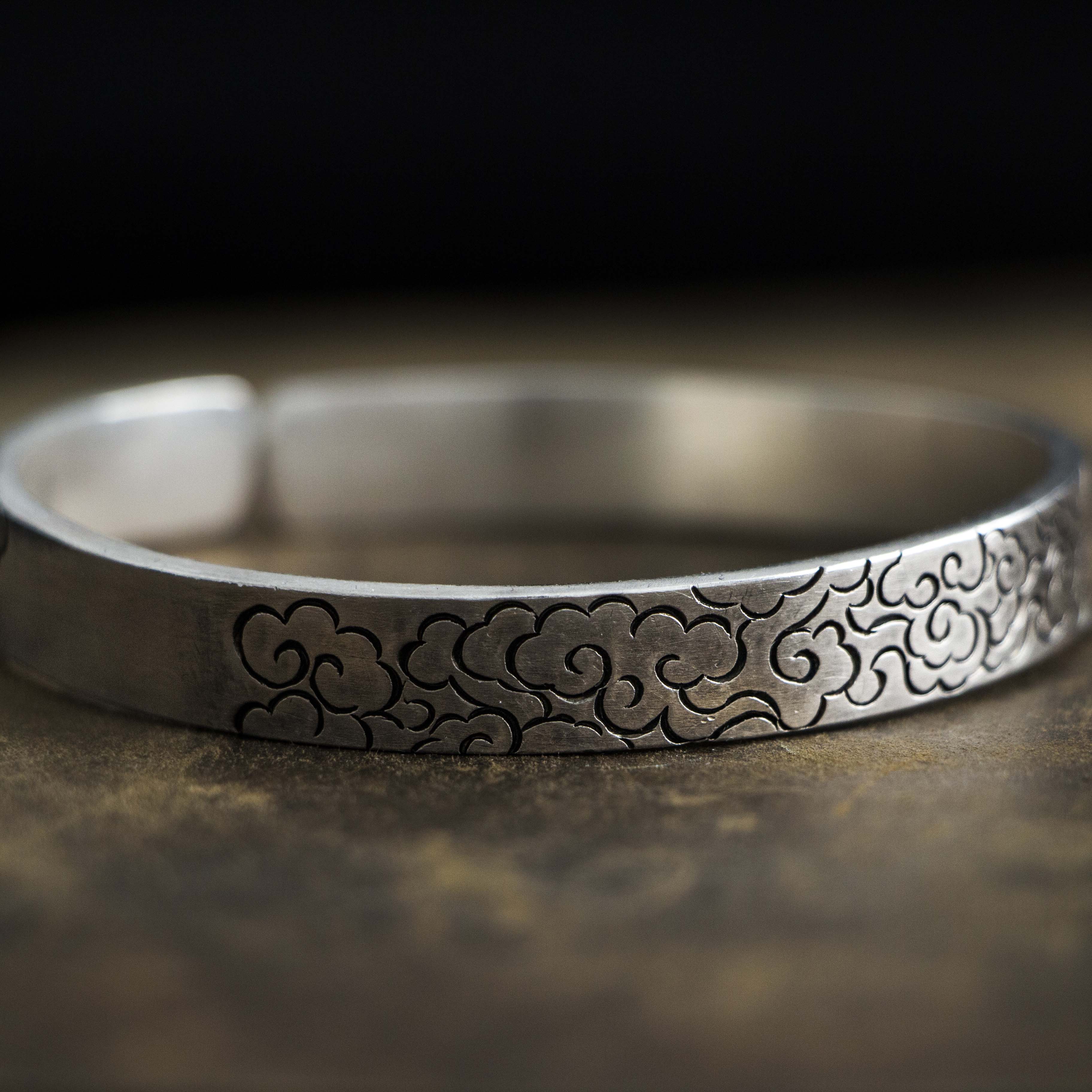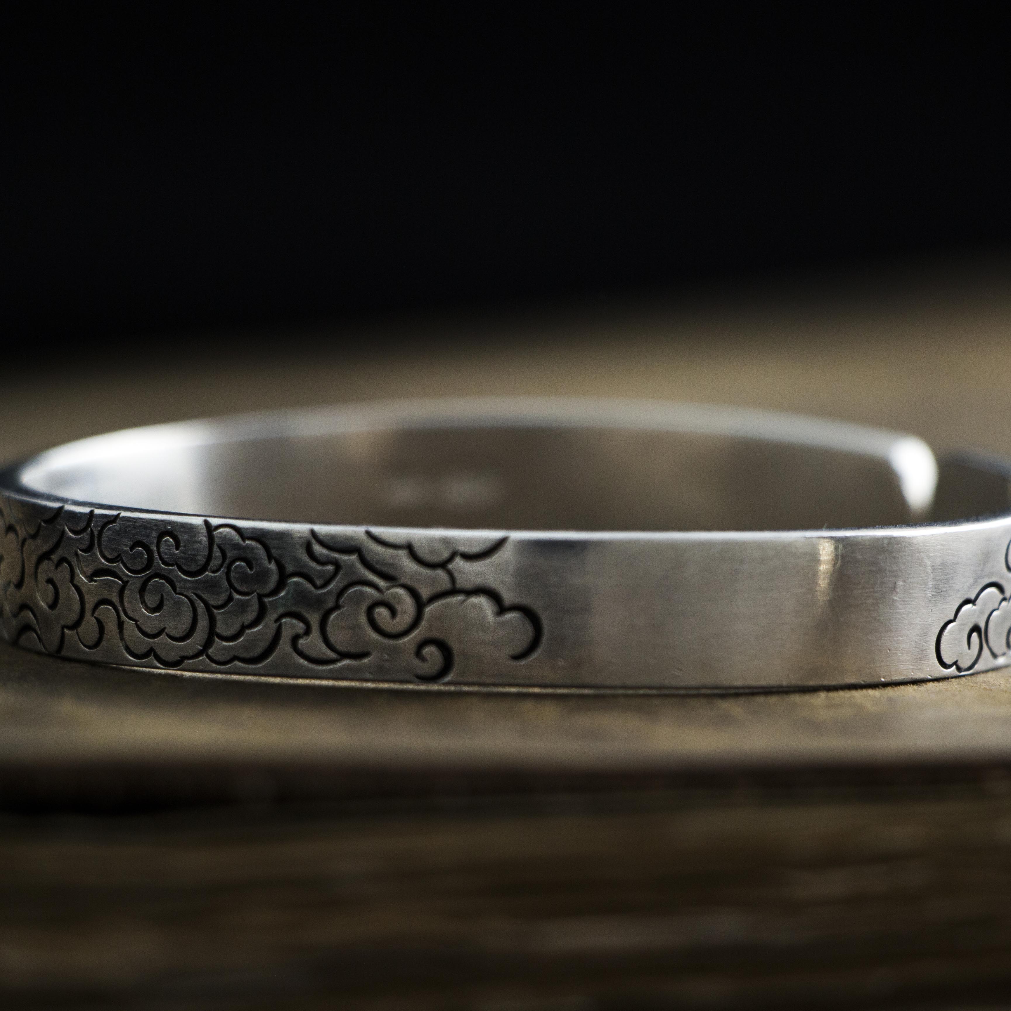 Jen Hutang Pure Silver Handmade Opening Men And Women's Retro Foot Silver Bracelets National Wind Bracelets Custom Lettering Silver Ornaments