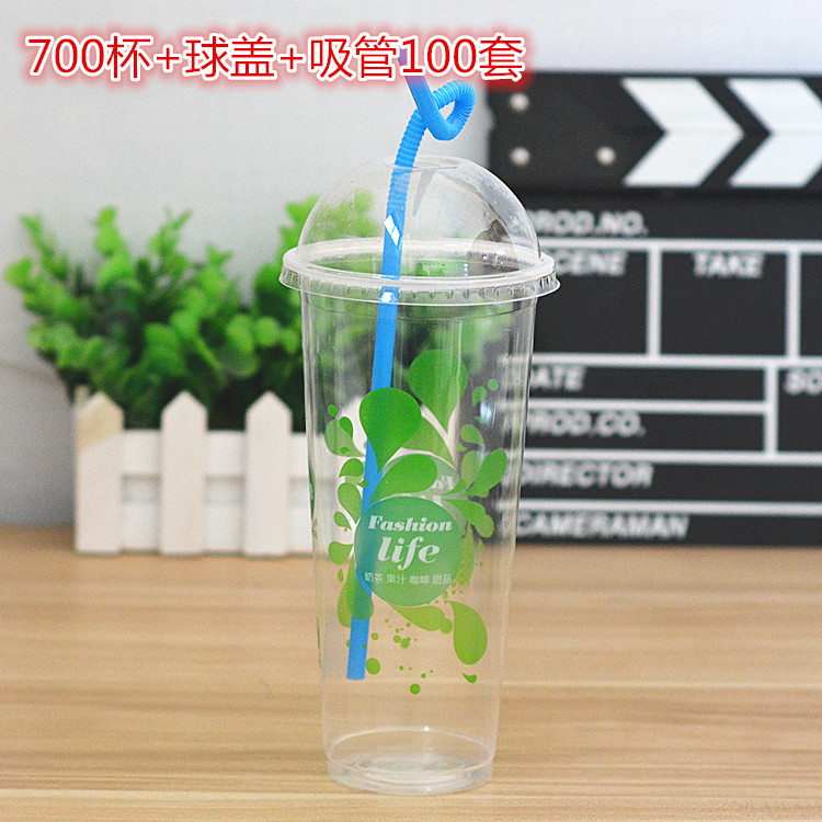 Disposable plastic milk tea cup thickened high transparent fashion life cold drink juice PP cup plastic cup with ball cover straw
