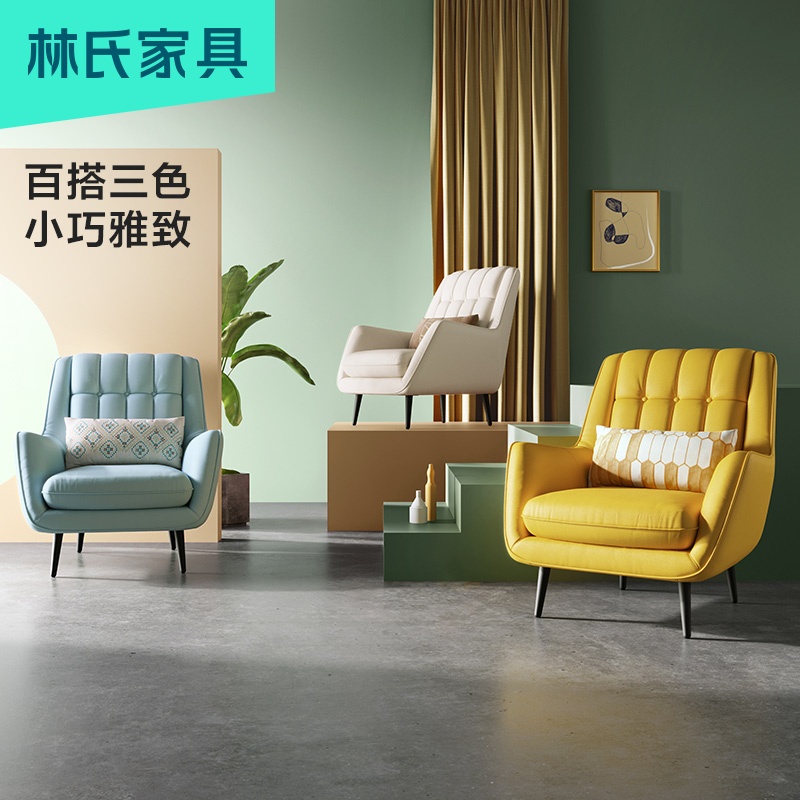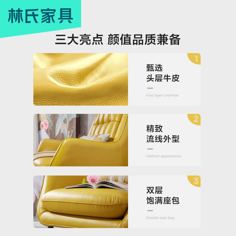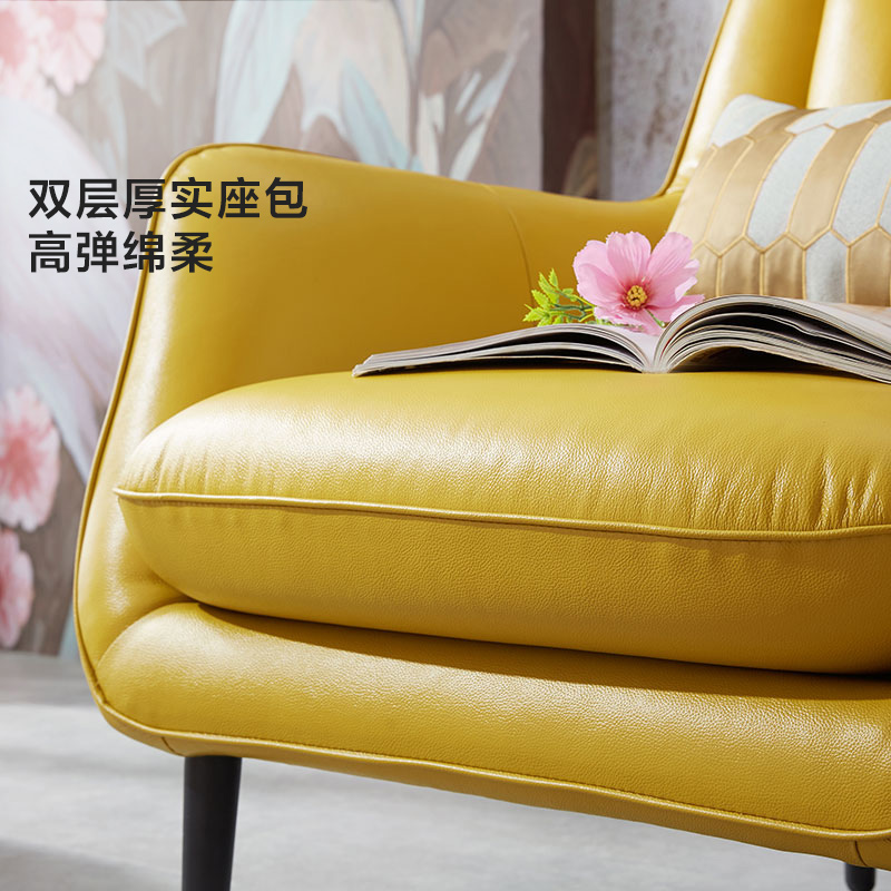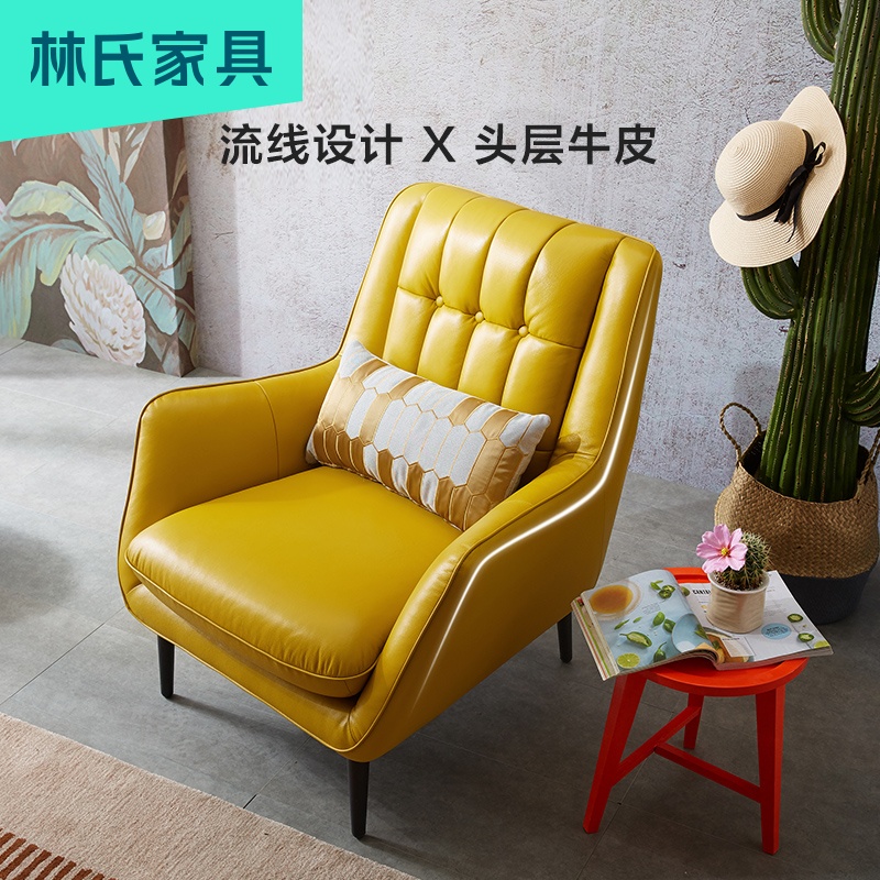 Lin's willful light lavish real leather sofa Nordic small family style living room modern minimalist headliner Bull Leather Single Sofa Chair