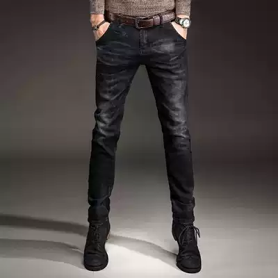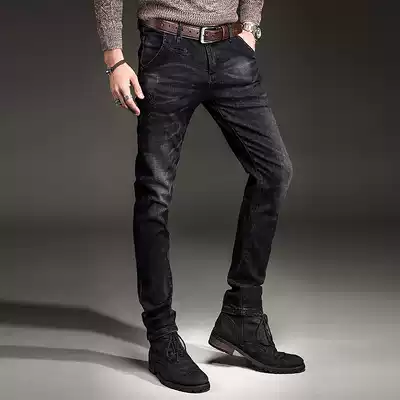 Black jeans men slim pipe pants 2021 autumn Korean version of the trend Joker fashion brand casual pants