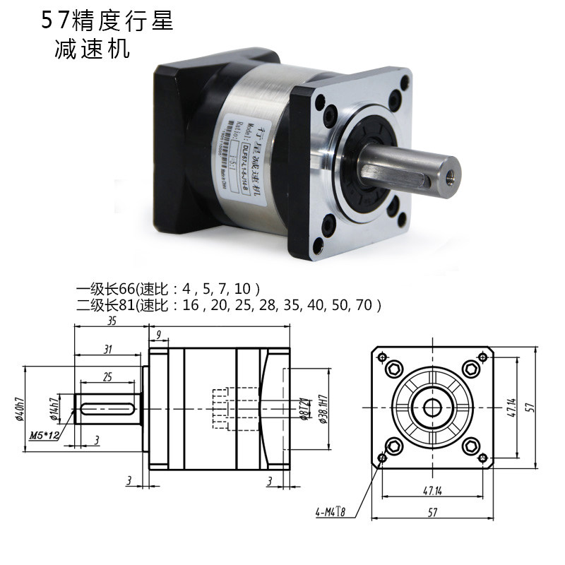 57 Step input shaft 8mm planetary machine (two-stage reducer output shaft 14MM