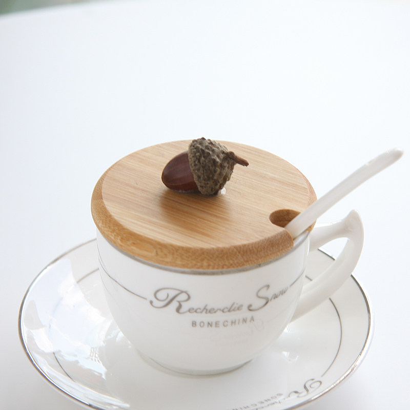 Creative dustproof and environmental protection solid wood bamboo diy handmade Mark teacup accessories Water coffee cup cover Acorn section