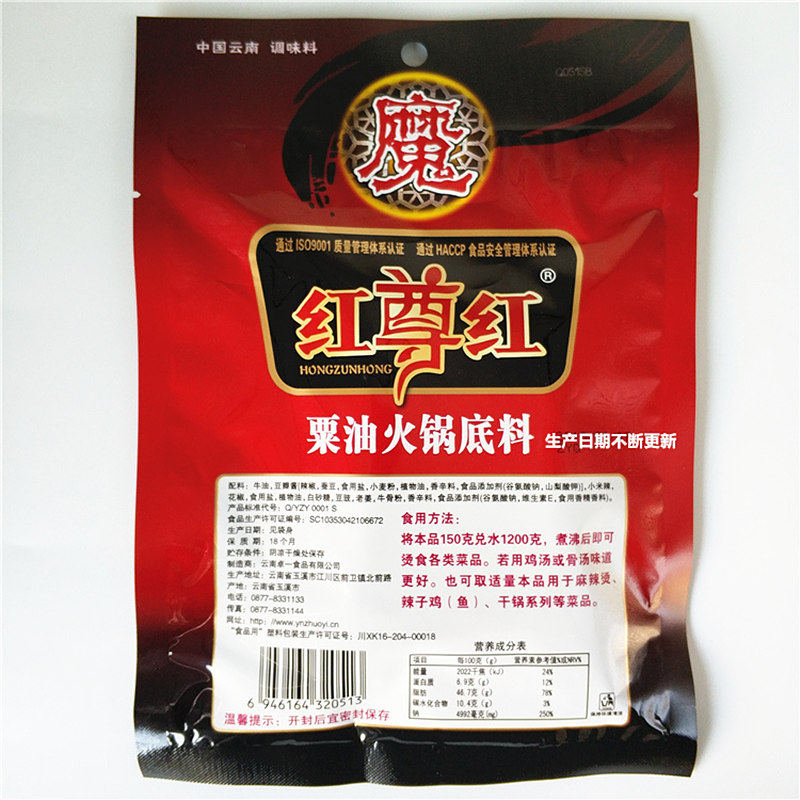 (3 bags) Red Zun Red Millet Oil Hot Pot Base 150g Spicy Hot Pot Red Soup Spicy Chicken Skewers