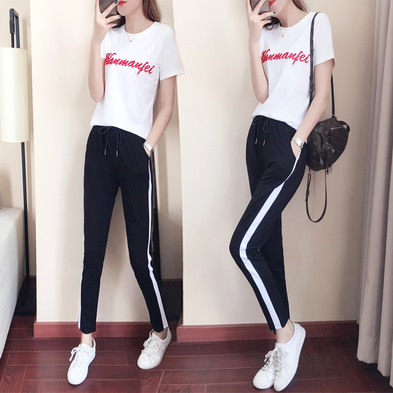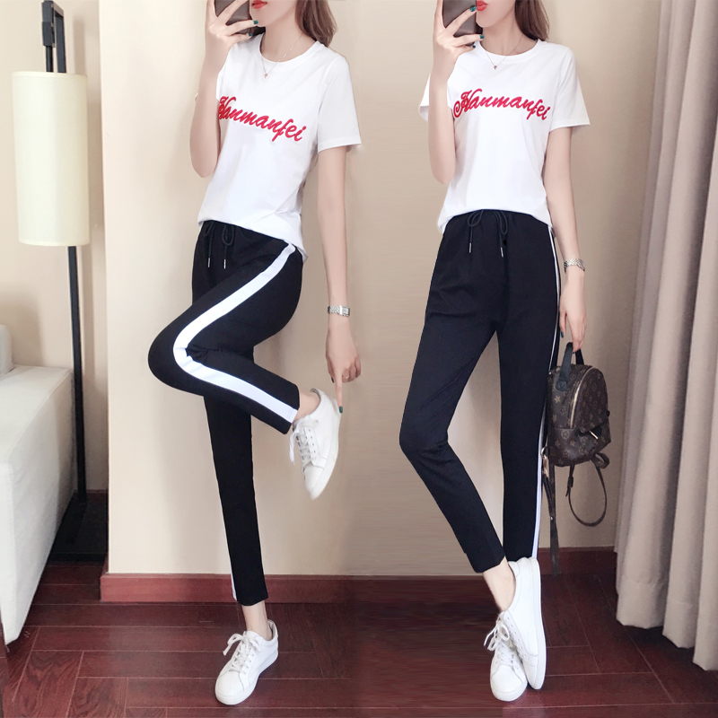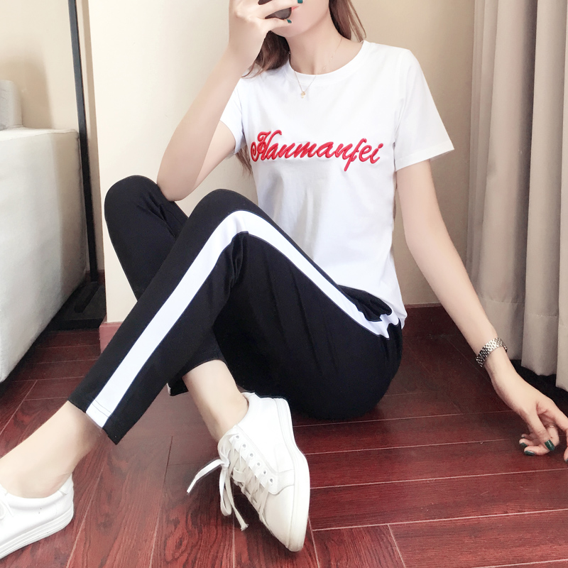 2022 Spring Summer New Body Display Slim Short Sleeve Casual Sports Suit Women Running Sportswear Fashion Two Sets