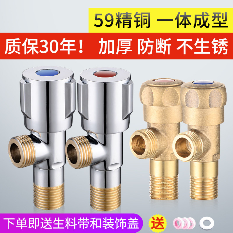 Corner valve full copper hot and cold water in 2-out 304 stainless steel 4 water stop valve Eight-word valve thickened brass triangular valve
