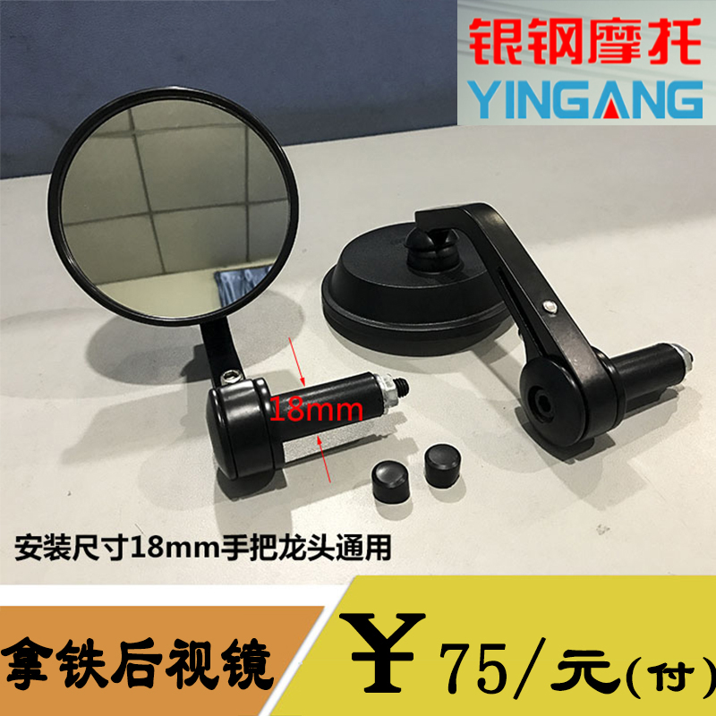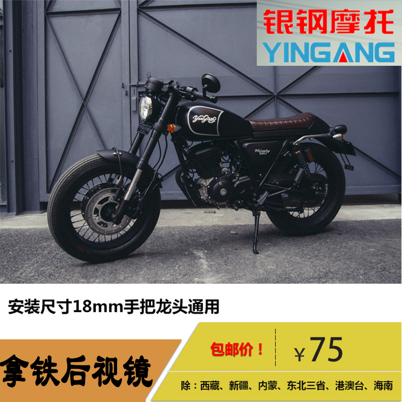 Silver steel latte motorcycle rearview mirror YG200-8 retro small round mirror modified rearview mirror aluminum alloy reflector