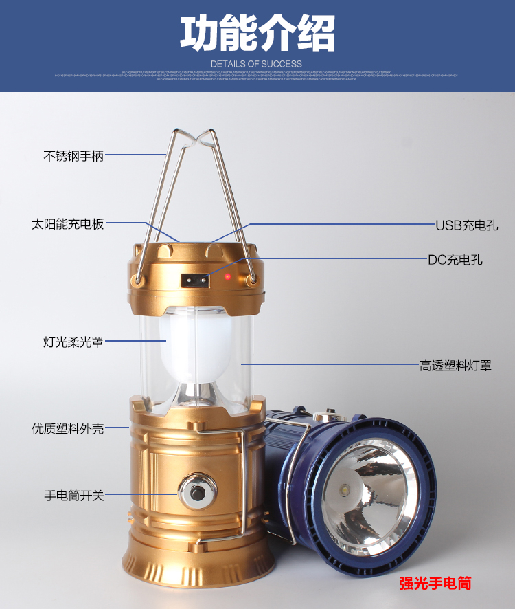 Stretch Camping Light LED Dual-use Portable Flashlight Outdoor Solar Charging Multifunction USB Action Power Coal Oil Lamp