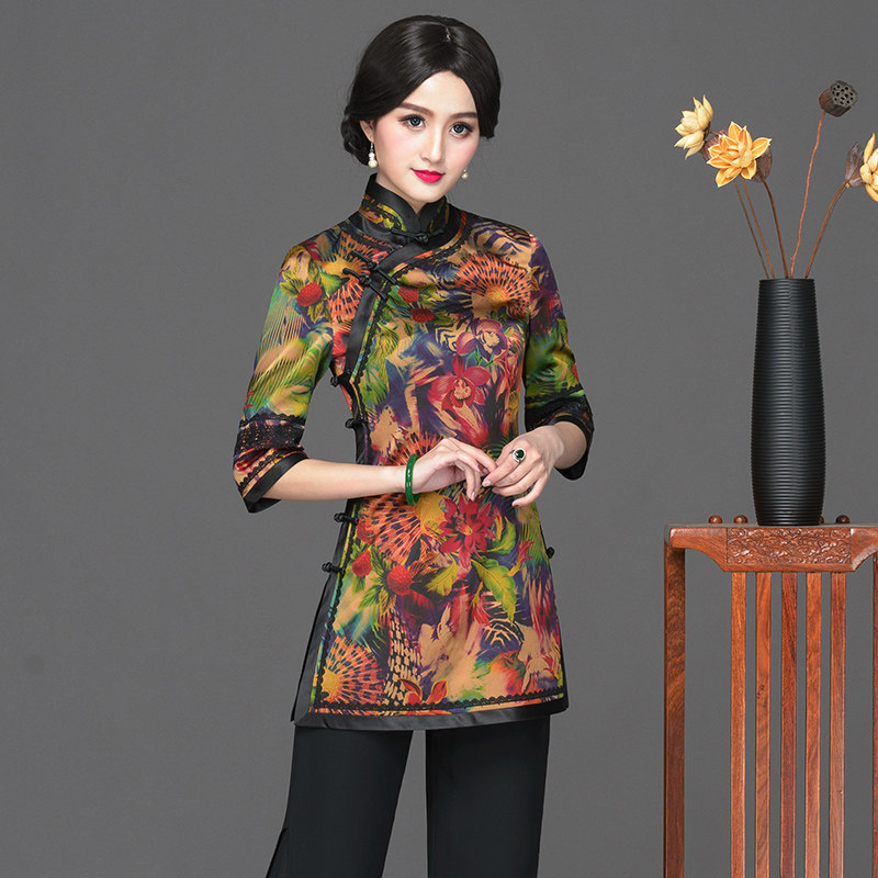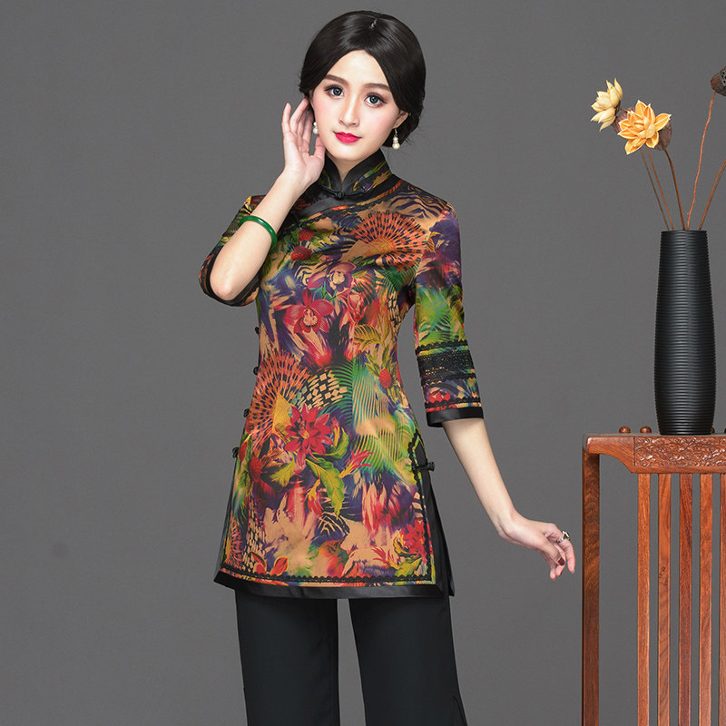 Chinese classic 2021 spring and summer Chinatown The long version of the daily Chinese style artistic meditation women's improved qipao blouses