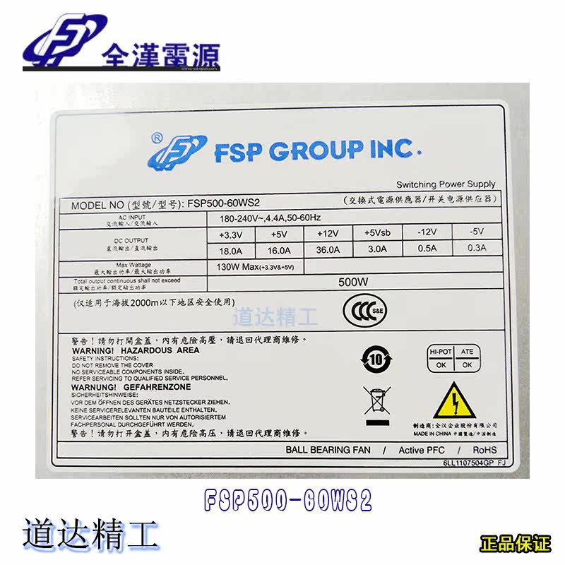 Quanhan 2U500W power supply FSP500-60ws2 rated power 2U rack-mounted server dual 8PIN power supply