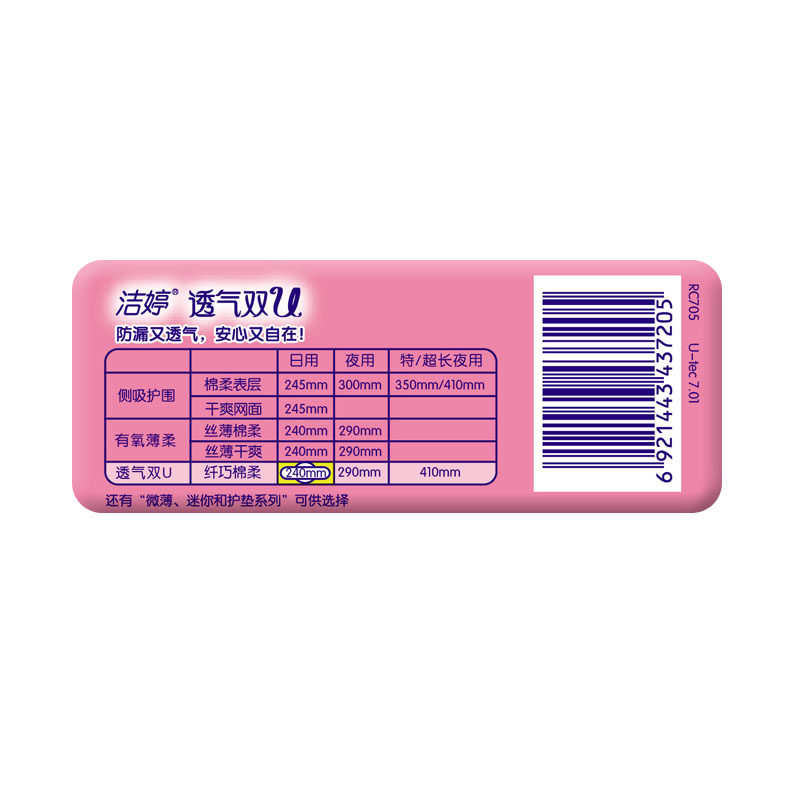 Clean and breathable double U daily cotton flexo 5 pieces sanitary cotton complete anti-leakage durable and breathable