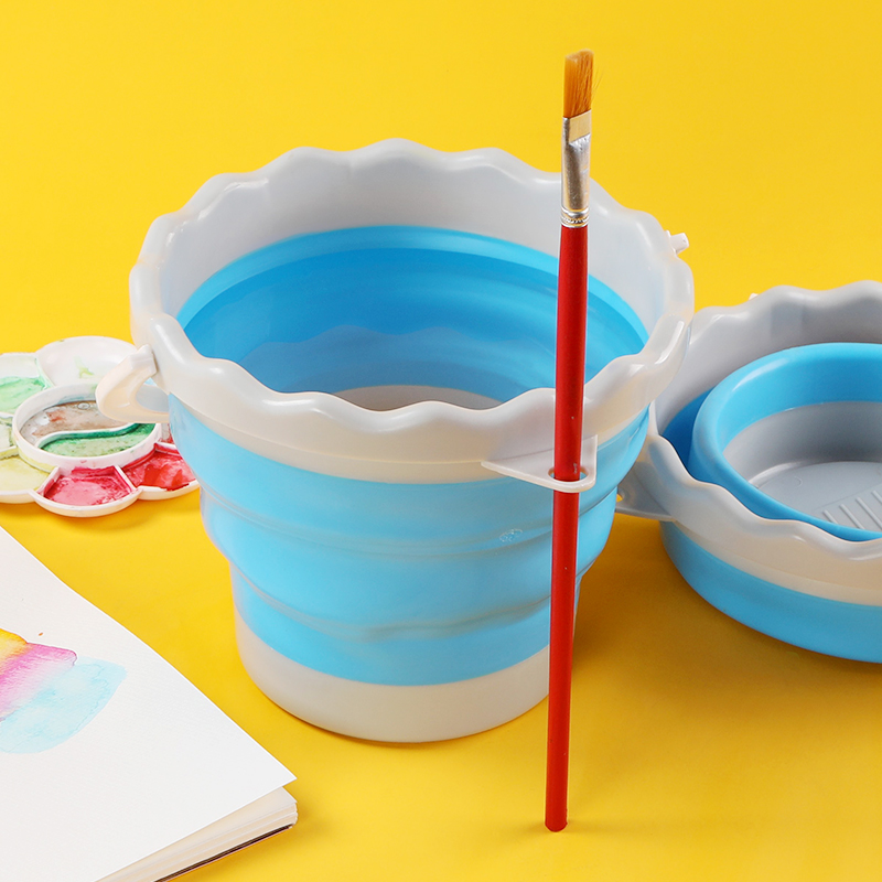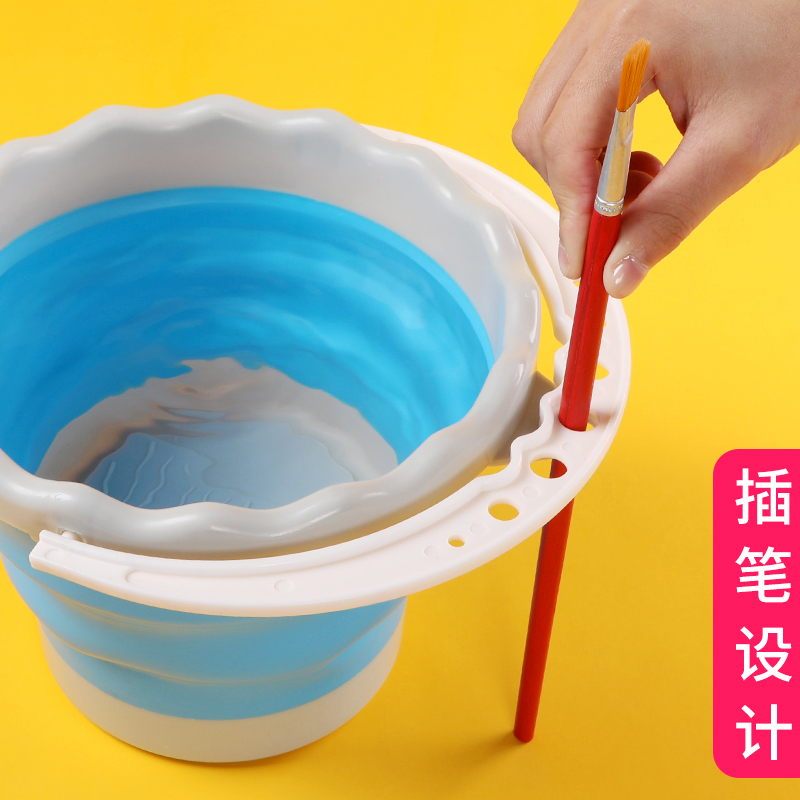 Silicone bucket washing pen bucket Folding retractable multi-functional large bucket Children's art students portable small shabu-shabu pen holder Chinese painting color pigment gouache painting watercolor painting special tools