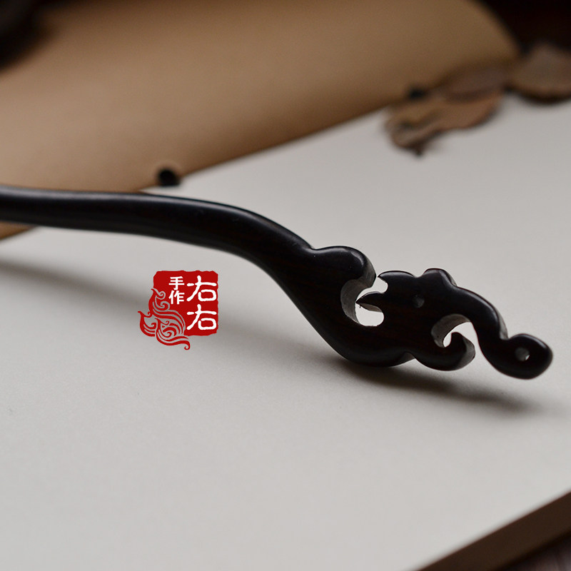 Hand-carved ebony hairpin re-classical hairpin bride antique hair accessories headdress Hanfu accessories