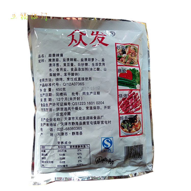 Tianjin Zhongfa Garlic Chili Sauce BBQ Sauce Garlic Chili Sauce 450g Seasoning Sauce 5 Bags
