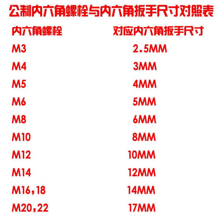1 5MM inner hexagon 2MM inner hexagon 2 5MM inner hexagonal (m3 screw used) 3MM inner hexagonal (m4 screw used) 4MM inner hexagon (m5 screw used) 5MM inner six