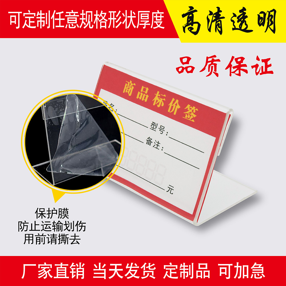 Acrylic price tag rack L-shaped transparent label card seat price card table card scan code display card custom printing